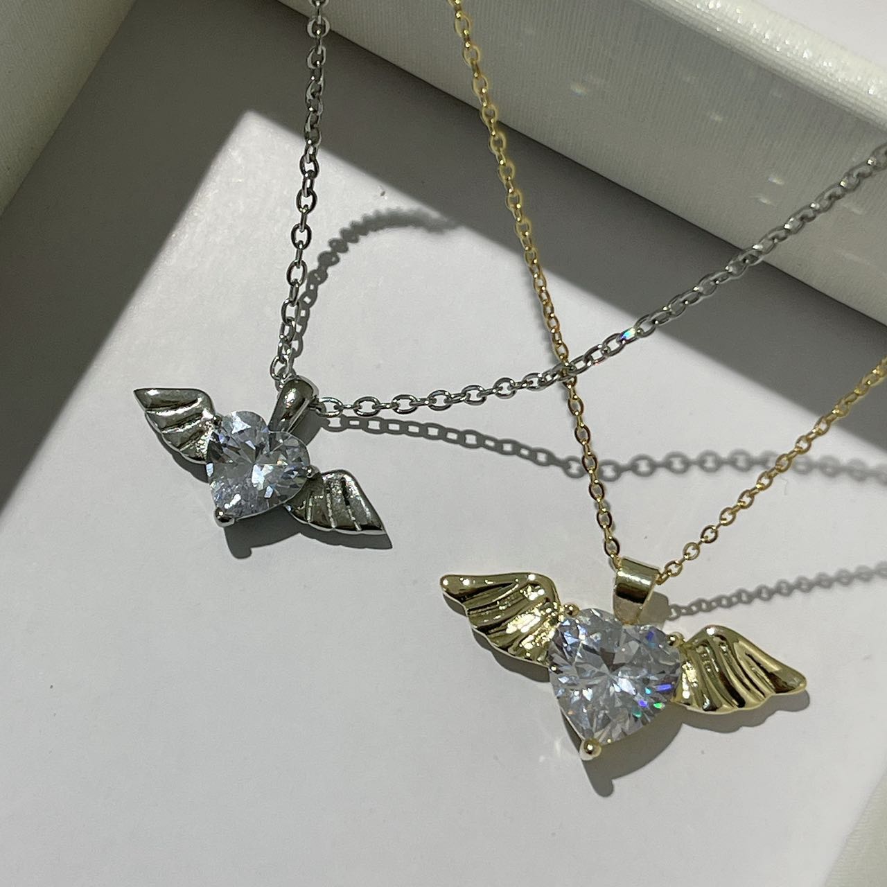 collana in acciaio con il cuore ali pendente ,inossidabile antiallergico