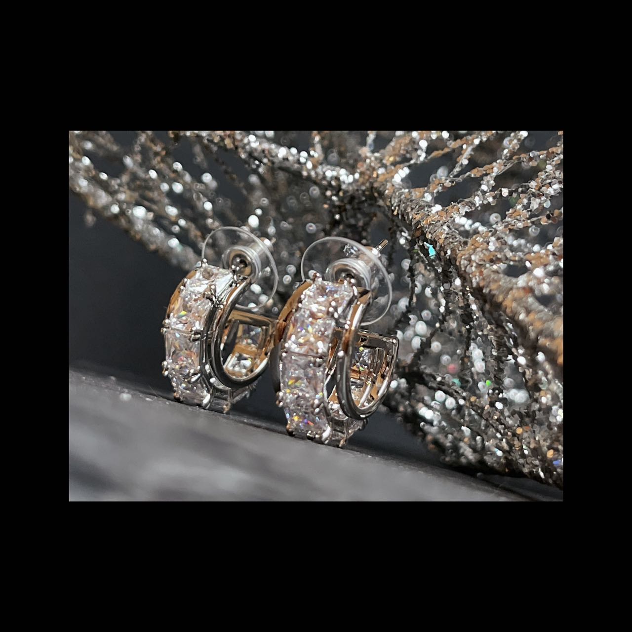 orecchini in ottone con zirconi in colore argento