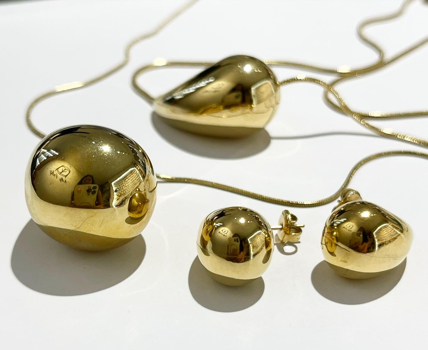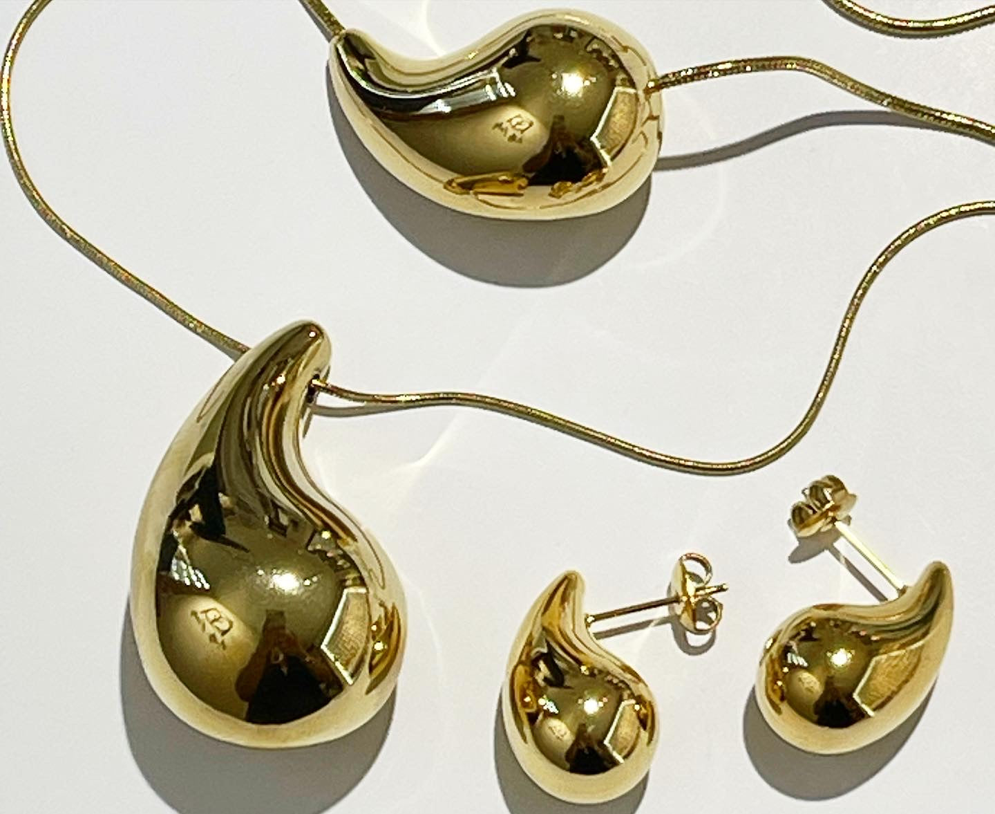 Orecchini e collana in forma goccia,