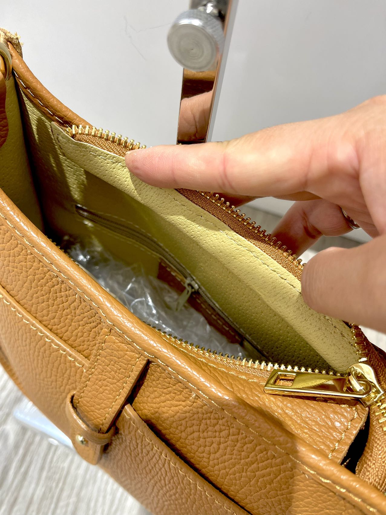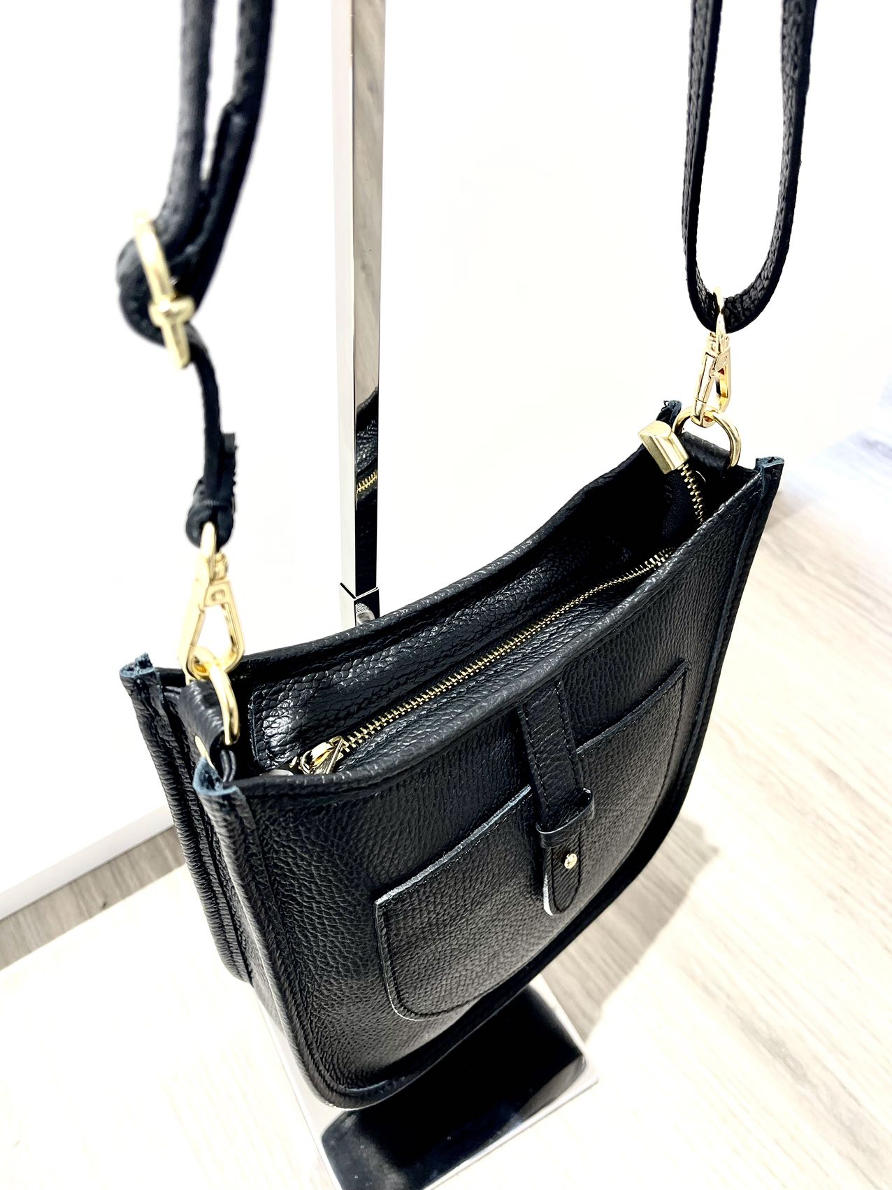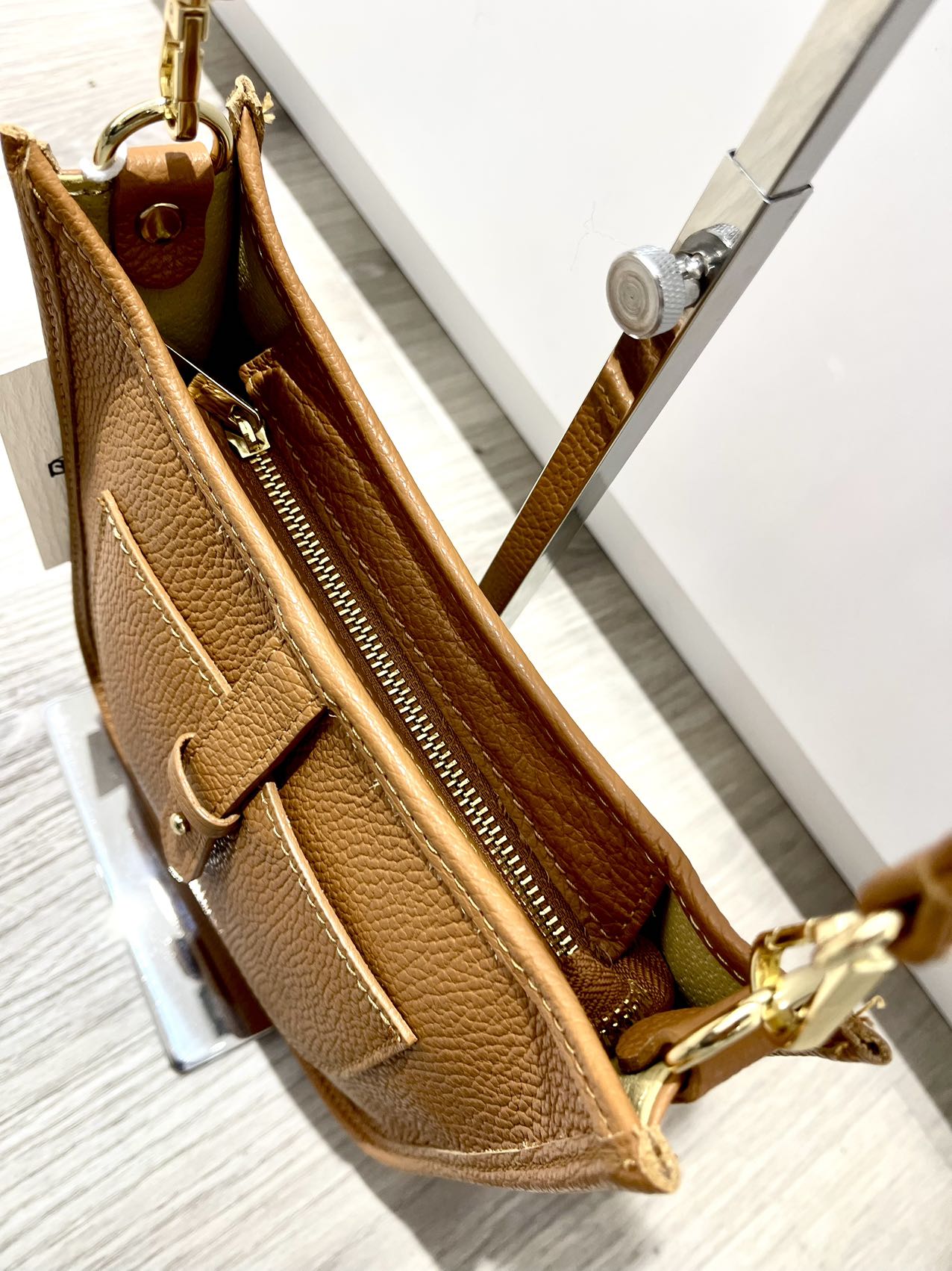 tracolla in pelle con taschino interno in cerniera